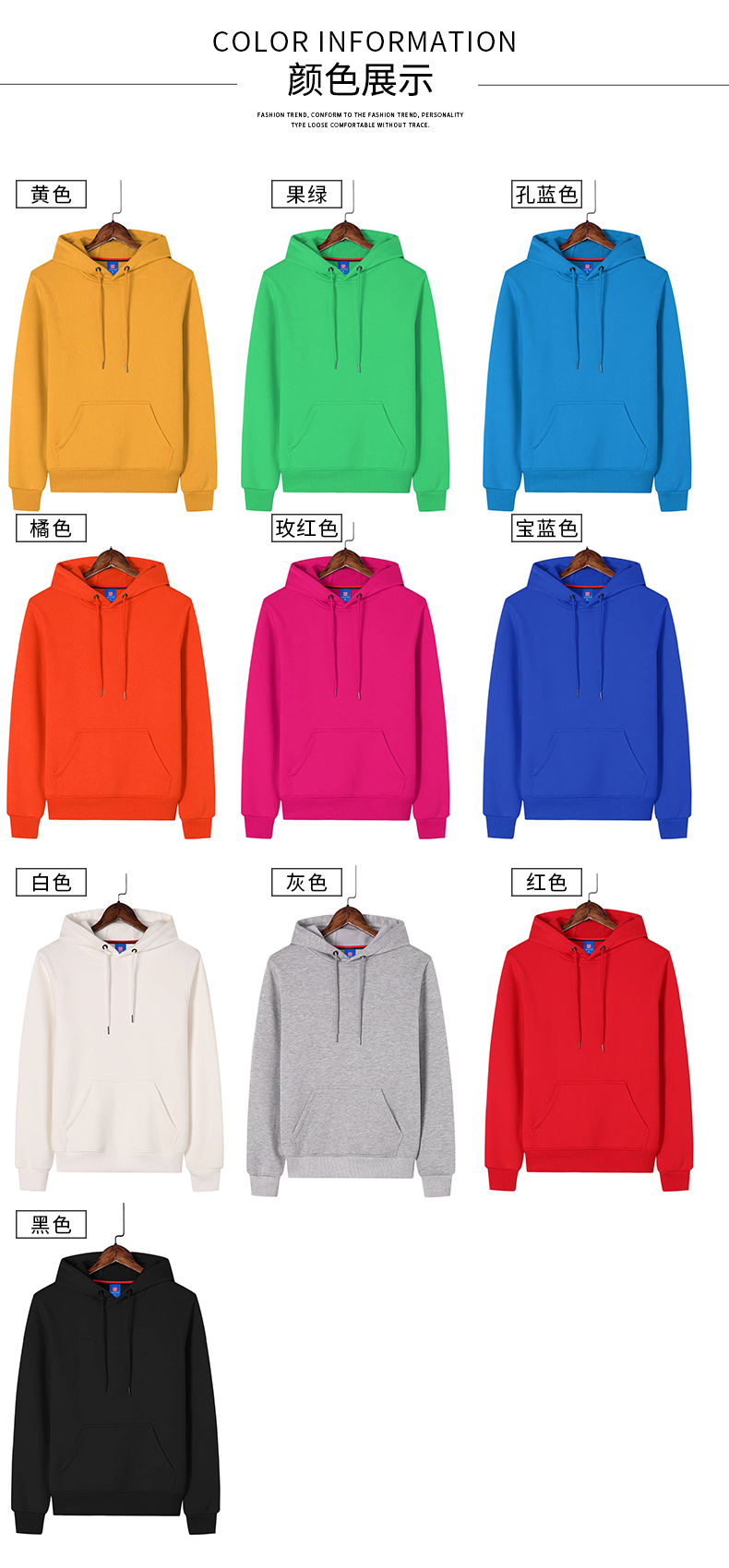 XY-RH28# 320gsm 100% Cotton Hoodie, no drawstrings, with pockets