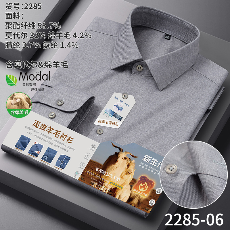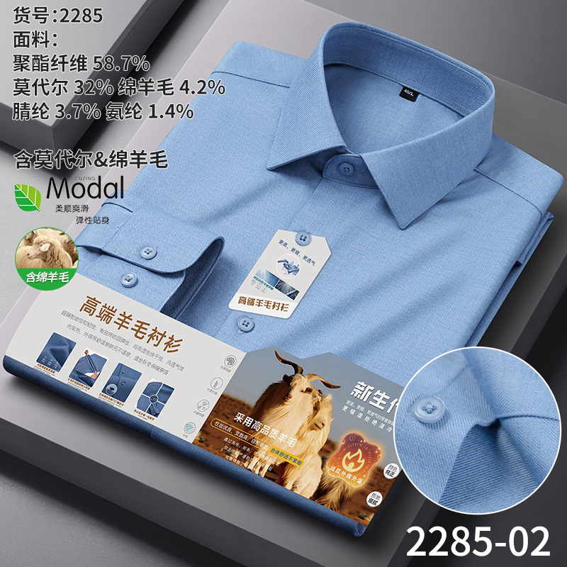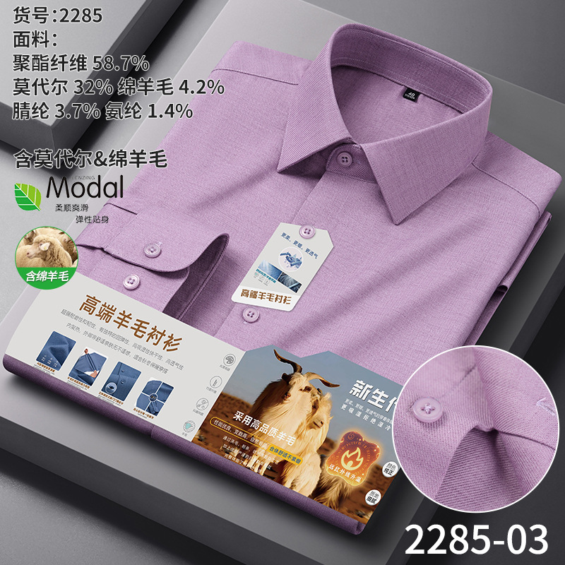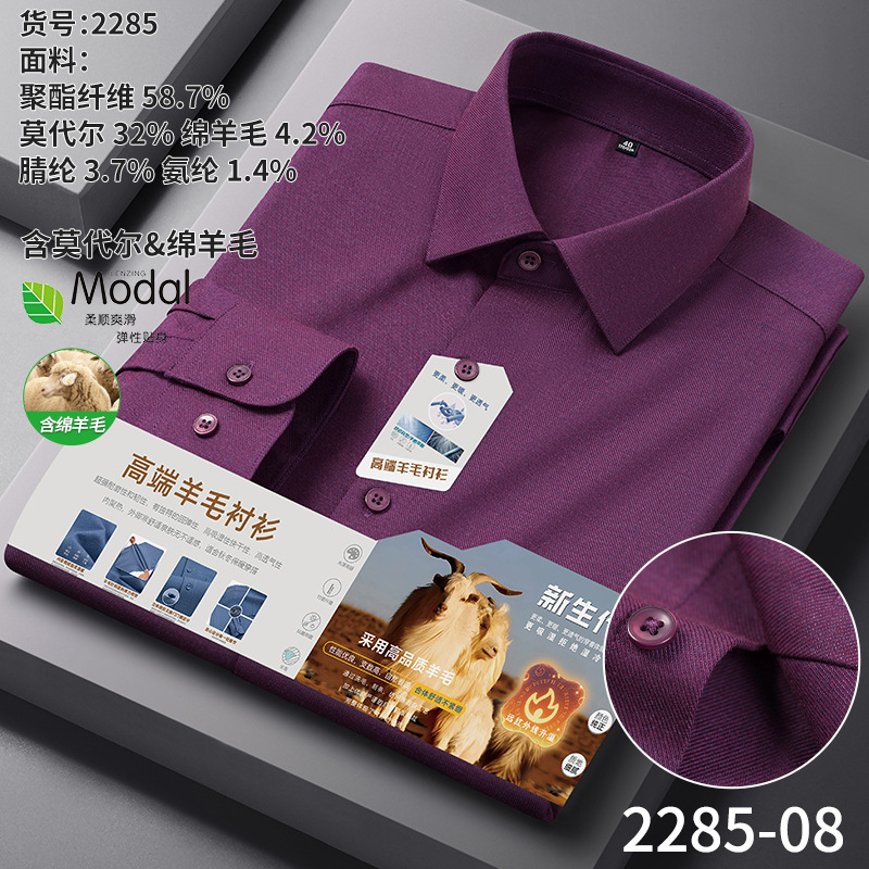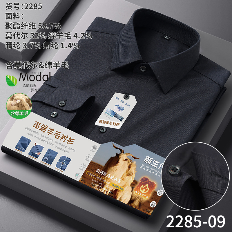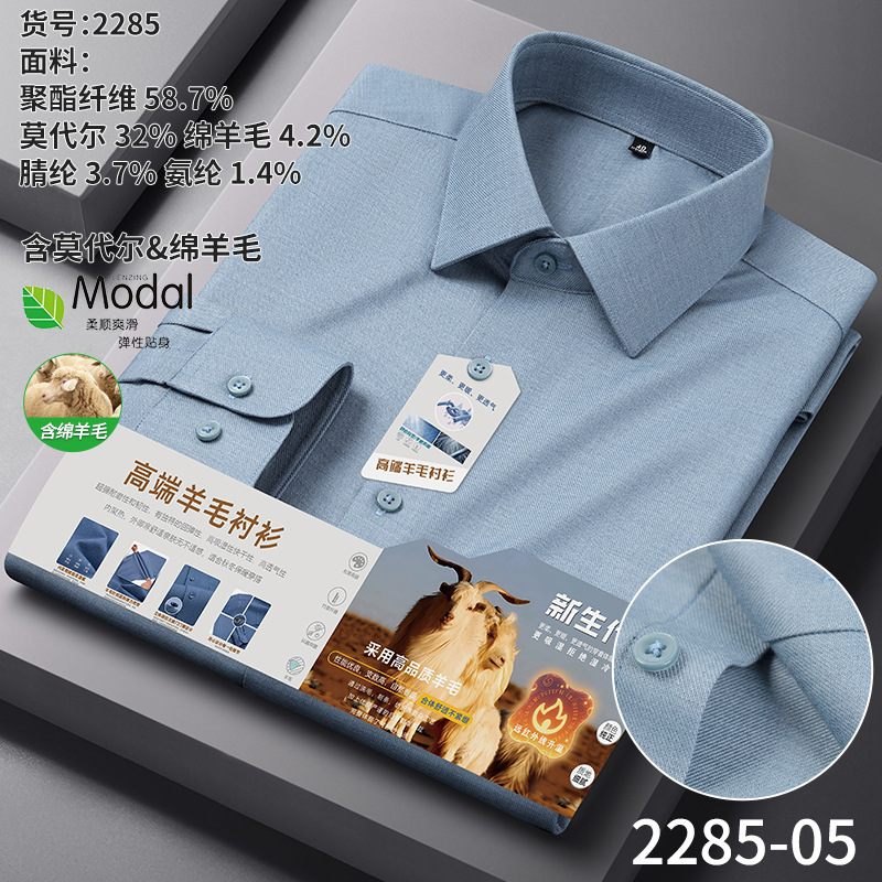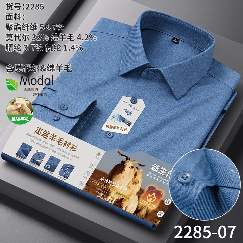 A-2285 Modal & Lambswool: Men’s Wrinkle-Free, Thickened Long-Sleeve Shirt for Autumn & Winter