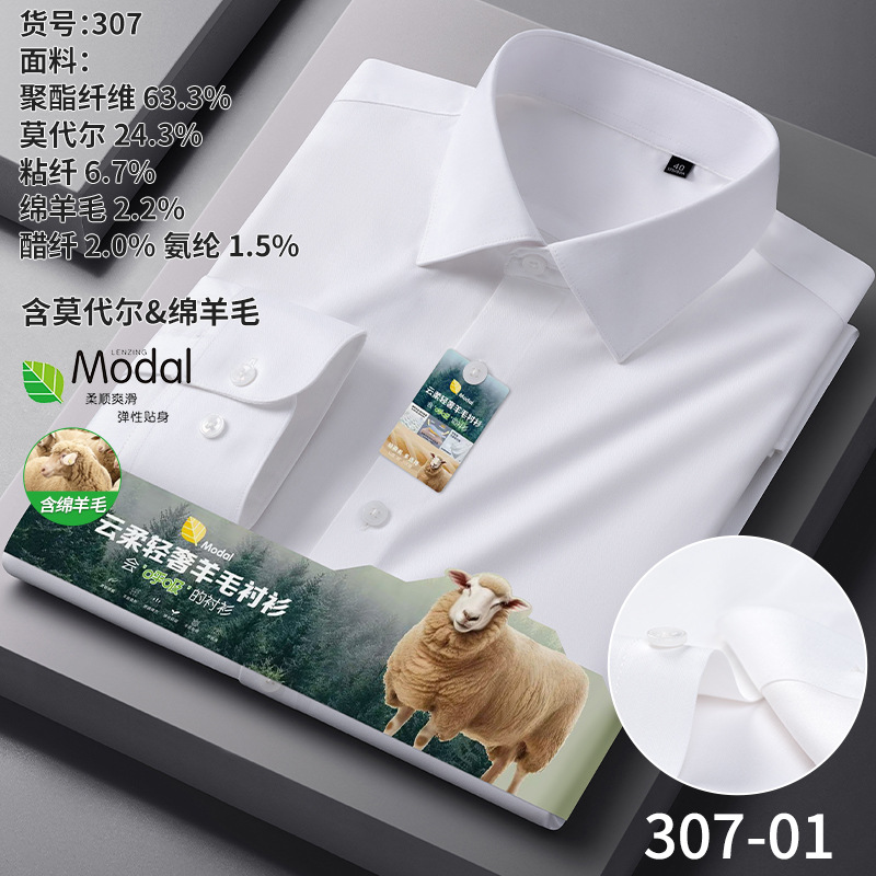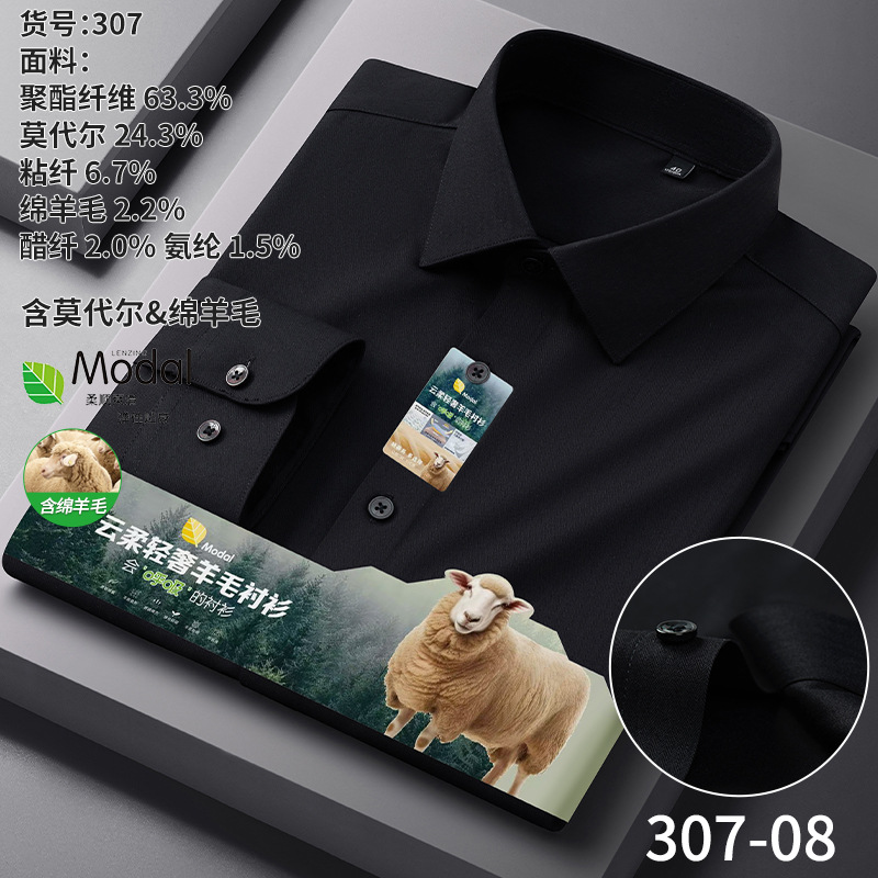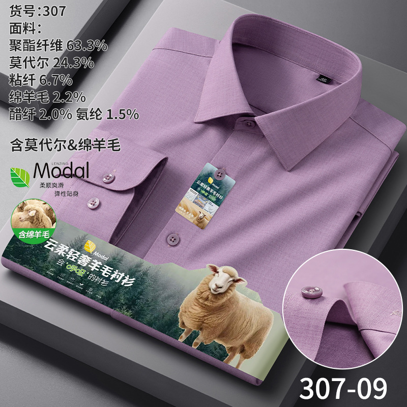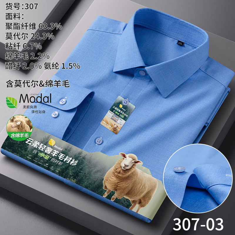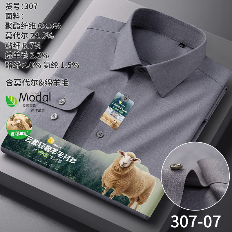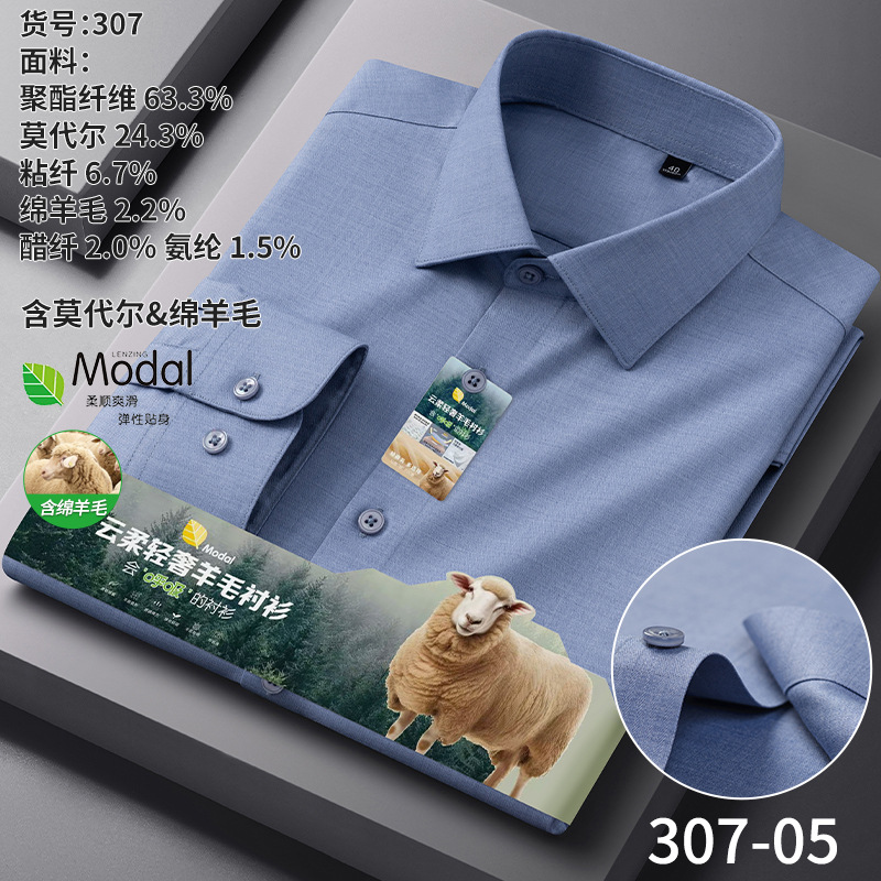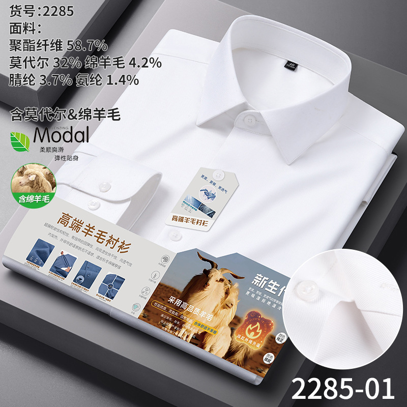 A-2285 Modal & Lambswool: Men’s Wrinkle-Free, Thickened Long-Sleeve Shirt for Autumn & Winter